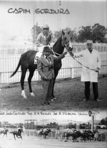 As duas primeiras éguas adquiridas pelo haras para comporem o plantel de reprodutoras foram PETITE FLEUR (1958 – Bambino-ARG e Zagreb-ARG) e MISS BARYTA (1967- Zumbo e Baryta por Peter’s Choice-IRE). Petite Fleur produziu no Haras Nice o ganhador de sete corridas na Gávea AZULINO por King Charming-GB. Miss Baryta produziu CAPIM GORDURA por King Tourby, que foi um cavalo de propriedade de meu pai com boa campanha no Cristal e Tarumã. Assim, a primeira vitória do Haras Nice como criador nos hipódromos foi com um animal de propriedade de João Carlindo. Aliás, como relatei no início, que justamente eu não poderia esquecer do Haras Nice, tal afirmação procede devido ao bom relacionamento de meu pai com Lineu Ristow, onde fizeram muitos negócios com potros, éguas e garanhões; e também pelas inúmeras vezes em que lá estive.
